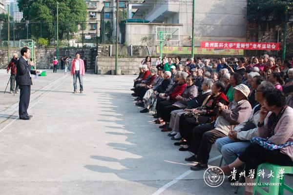 比赛开始前,校党委副书记战勇代表学校作了热情洋溢的讲话。他首先祝离退休老同志重阳节快乐!对前来参加运动会的老同志表示热烈欢迎!对运动会的举办表示热烈祝贺!他指出,一直以来,学校和附院党委高度重视离退休工作,全面贯彻党和国家的有关政策,积极组织开展有益于老同志身心健康的各种活动,得到了老同志们的欢迎和肯定。他强调,老同志是宝贵财富,在岗时为学校、附院各个时期的建设和发展奉献青春、挥洒汗水,作出了重要贡献。虽然现在离开了工作岗位,但仍然“老骥伏枥,志在千里”,用长期积累起来的丰富知识和经验,通过各种方式为学校的建设发展、稳定和谐贡献力量。他指出,老同志保持良好的体质,健康的身心,是社会稳定的需要,是学校改革发展的需要,是家庭和谐的需要,更是每一位老同志自身的需要。他希望老同志们通过坚持体育锻炼,愉悦身心,强健体魄,结交朋友。他由衷希望老同志们坚持友谊第一、安全第一、重在参与、量力而行的原则,玩得开心,玩得尽兴,并祝愿老同志们健康长寿,退休后的生活幸福美满!