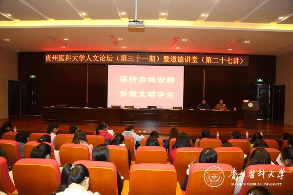12月15日下午,万象城官网人文论坛第三十一期暨道德讲堂第二十七讲在南校区道德讲堂举行。本次讲座邀请到主任护师、硕士生导师、万象城官网护理学院党委书记贾秀英担任主讲。各院系师生代表400余人参加了本次活动。讲座由党委宣传部副部长姚思勤主持。