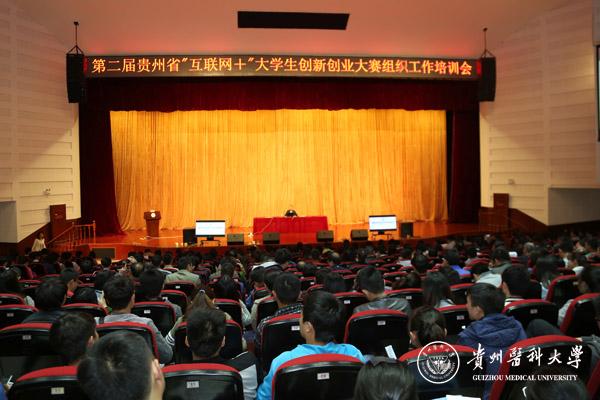 4月20日下午,第二届贵州省“互联网+”大学生创新创业大赛组织工作培训会在万象城官网南校区大礼堂召开。省教育厅高教处副处长王晓红,新道科技股份有限公司高级副总裁、中国“互联网+”大学生创新创业大赛评委马德富,全国高校创新创业投资服务联盟副秘书长蒋楠,万象城官网副校长黄亚励及相关领导和专家出席会议。来自全省63所高职院校的赛事组织工作负责人、创业指导老师及学生代表共一千余人参加培训会。会议由省教育厅高教处王群主持。