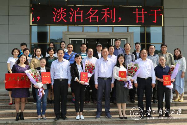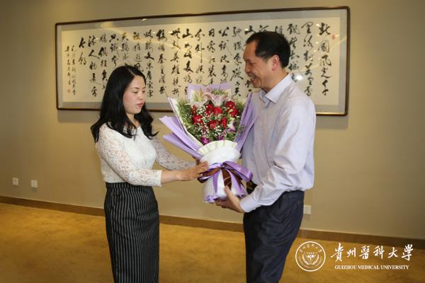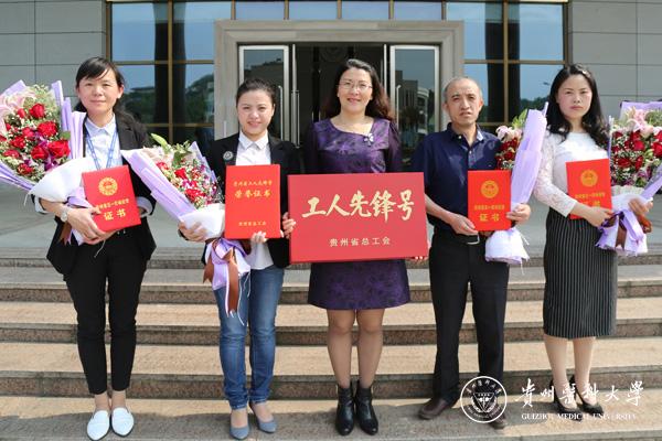 林昌虎代表学校向获奖集体代表、获奖个人表示祝贺并向他们献了鲜花,战勇宣读贵州省总工会表彰结果,师生代表表达了对劳模的敬仰之情和学习先进督促自身进步的决心。