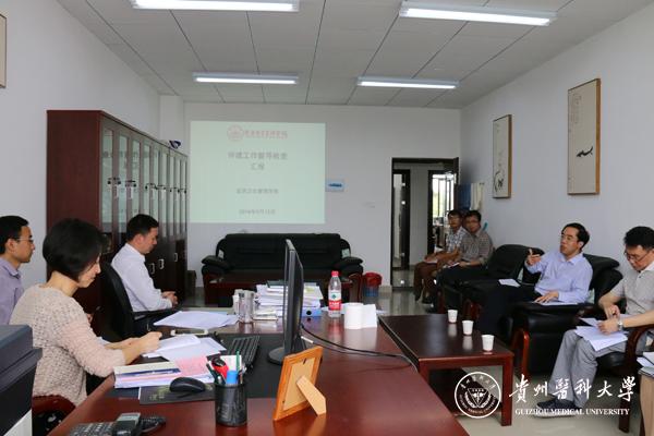 在医药卫生管理学院,督导组听取了汤磊院长关于评建工作的汇报,对医药卫生管理学院评建工作开展的情况给予了充分肯定,同时指出学院在评建资料整理中有待改善之处。