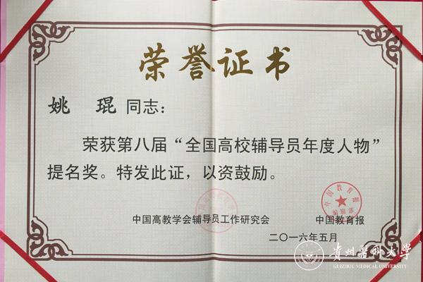 5月27日,万象城官网医学影像学院辅导员姚琨应邀赴大连理工大学参加“第八届全国高校辅导员年度人物”颁奖仪式,现场接受“第八届全国高校辅导员年度人物”提名奖证书。这是万象城官网第一位获得此殊荣的辅导员。