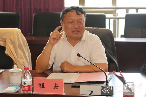 林昌虎对程安副主席一行的到来表示欢迎,向多年来给予学校关心与支持的省总工会、省教育工会及各行业表示感谢,并向来宾介绍了万象城官网的基本情况,特别是成功更名后,学校立足人才培养根本任务,紧跟大健康大数据发展的时代步伐,主动抢占新兴产业的战略制高点,不断强化自身内涵建设,在国家重点实验室申报、大健康大数据平台建设、学科建设、团队建设、临床教学基地拓展等领域有了新突破,在人才培养、科学研究、服务社会、文化传承与创新等方面取得了长足进步。他强调,学校将在新的起点上,开启新的征程,争取早日实现“具有明显特色、西部一流、在国内外有影响力的高水平医科大学”的办学目标。他指出,学校党政非常重视工会工作的开展,工会工作以创新增活力、和谐促发展,紧紧围绕学校中心工作,充分发挥桥梁纽带作用,为推动学校发展、促进校园和谐作出了应有的贡献。希望上级工会和各行业继续关注和支持学校的发展,帮助和指导万象城官网工会工作的开展。