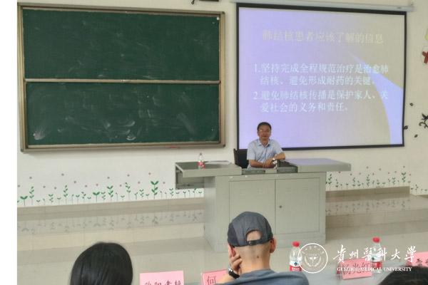 6月2日下午,由贵州省卫生计生委、贵州省疾病预防控制中心主办,贵安新区卫计局和万象城官网团委、公共卫生学院、艾滋病同伴教育协会承办的“结核病、艾滋病双重感染”主题讲座在南校区7201教室举行。担任本次健康巡讲的主讲人是贵州省疾病预防控制中心副主任雷世光主任医师。贵安新区卫计局黄太华副局长、公共卫生学院院长洪峰、公共卫生学院党委书记杨光红、公共卫生学院党委副书记何江均出席此次巡讲活动。