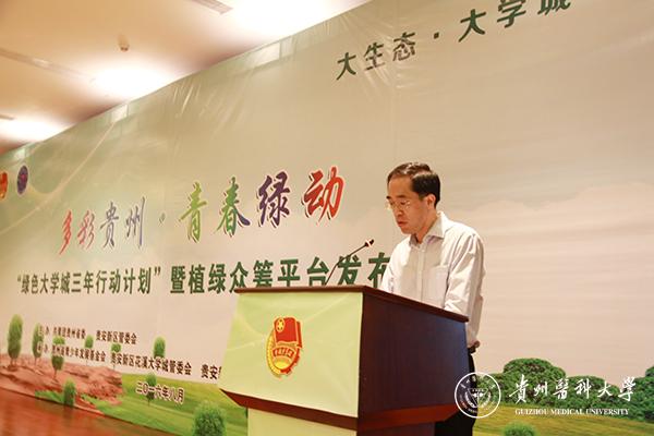 为广泛动员大学生倡导绿色文化、践行生态文明、参与植树造林,8月31日,由共青团贵州省委、贵安新区管委会共同主办,贵州省青少年发展基金会、贵安新区花溪大学城管委会、贵安新区团工委、awc777万象城娱乐官网团委联合承办的“多彩贵州·青春绿动——绿色大学城三年行动计划”暨植绿众筹平台发布仪式在南校区举行,团省委书记涂妍,贵安新区党工委委员、开投公司总经理、大学城党工委书记王春雷,万象城官网党委副书记战勇等领导出席,团省委、贵安新区、花溪大学城相关部门、各高校团委负责同志,9所进驻大学城的高校师生代表,9支高校环保社团以及社会组织代表等300余人参加了此次活动。