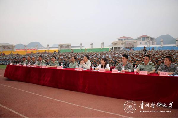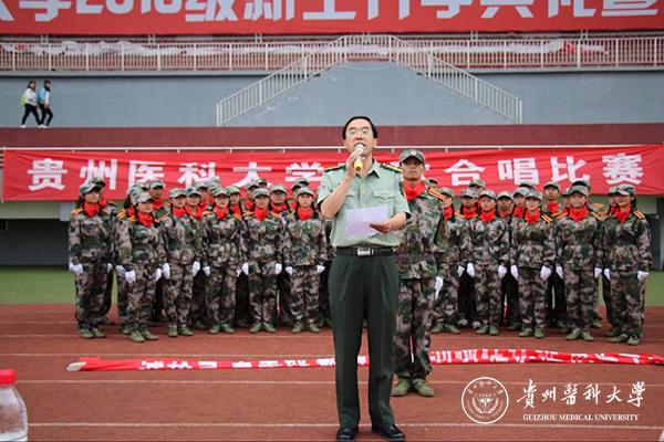 战勇代表学校向承训部队官兵连日来尽心尽力的指导表示感谢,对各位参与军训老师们富有成效的辛勤付出表示感谢,并对所有2016级新生表示慰问。战勇指出,在军训紧张而有序进行的过程中,举行歌咏比赛是活跃军训生活、丰富精神内涵的重要活动,唯有穿上军装才能享受军人的无上荣光,唯有唱响军歌才能真正挺起作为军人的胸膛,唯有高唱校歌才能感受贵医的历史厚重和使命担当,军歌、校歌是我们取之不尽用之不竭的精神食粮,希望同学们唱出军人的豪迈,唱出贵医学子的青春风采,在后面的军训活动中再接再厉,继续发扬拼搏精神,圆满完成军训任务。