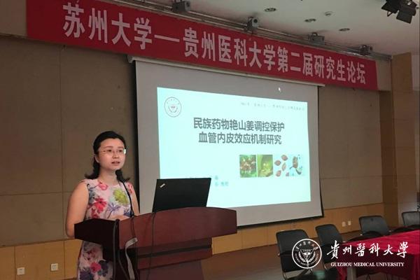 苏州大学研究生院副院长钱振明教授介绍了苏大研究生教育历史沿革,总结了苏大与贵医5年合作的成果,希望苏大与贵医的医学交流更频繁,并预祝论坛圆满成功。