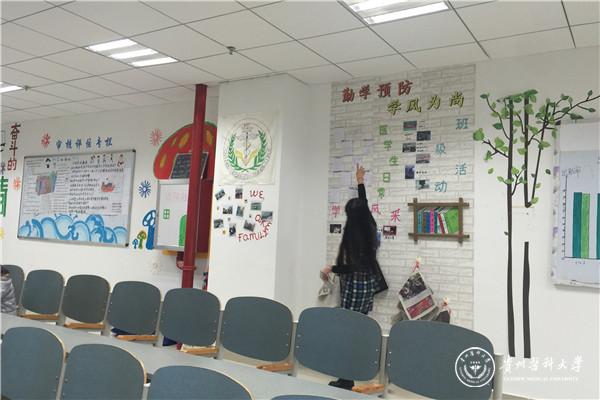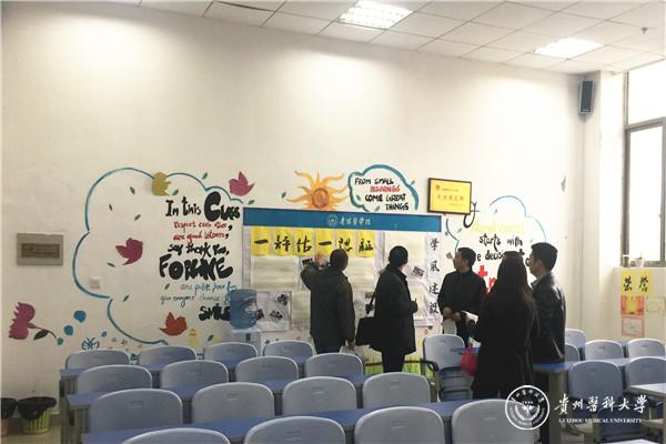 108个教室文化墙内涵丰富、形式新颖、图文并茂、美观大方。各班级立足万象城官网校园文化内涵,通过书写贵医赋、励学名言警句、班训等内容,既体现了贵医文化传承,又展示了各学院、班级、专业特色。同时,各班级教室宣传栏内容充分展示了同学们积极参与学校评估认证、有效推进学风建设过程中的做法及亮点,突出反映学习活动成果。