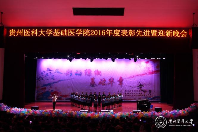 11月8日,基础医学院2016年度表彰先进暨迎新晚会在南校区礼堂举行。学校后勤管理处处长张秀林、基础医学院党政全体领导、教研室主任及30余名老师与1800余名同学参加了晚会。晚会分“表彰先进、引领示范”和“彩动缥缃、基础华章”两个部分。