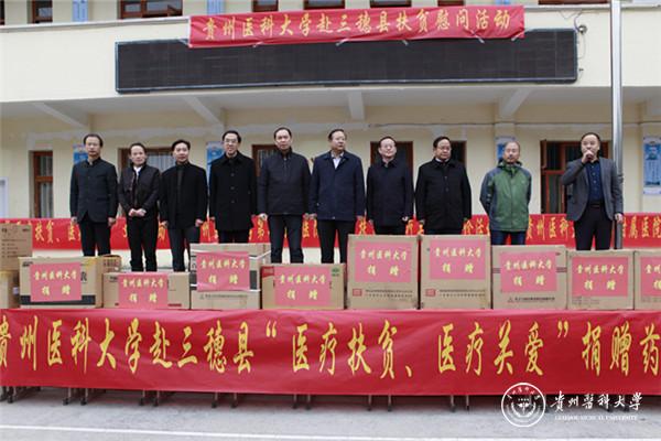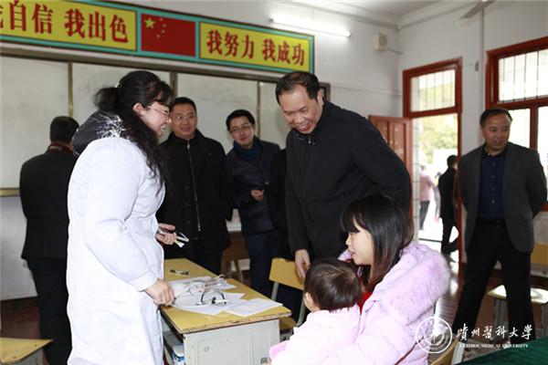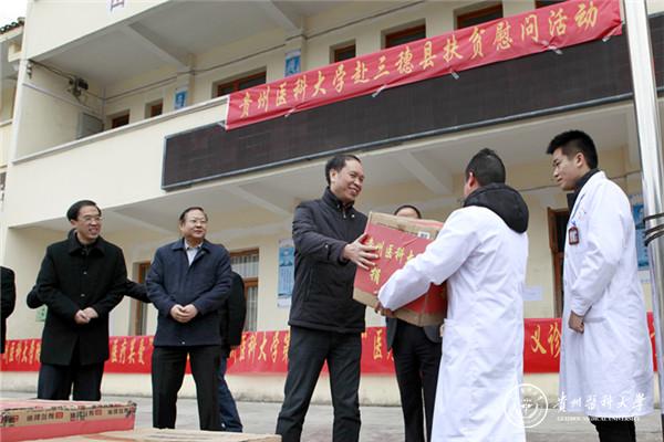 为深入贯彻落实全省对口帮扶工作会议精神,进一步做好新一轮省内对口帮扶工作, 11月25日,校党委书记林昌虎,校党委副书记、附属医院党委书记刘兴德,校党委副书记战勇带领学校党办、组织部、宣传部等相关职能部门及三所附属医院医疗队共80余人到三穗县款场乡开展“医疗扶贫”、“医疗关爱”系列活动。