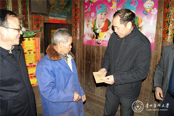 捐赠仪式结束后,校领导看望了万象城官网派驻三穗县担任驻村干部的七位同志,听取了他们的工作汇报,对前阶段的工作给予了充分肯定,对下一步工作提出了要求。随后,校领导与驻村干部一起到贫困户家中,看望贫困户,了解贫困户收入来源、教育医疗等基本情况,并为贫困户发放了慰问金。