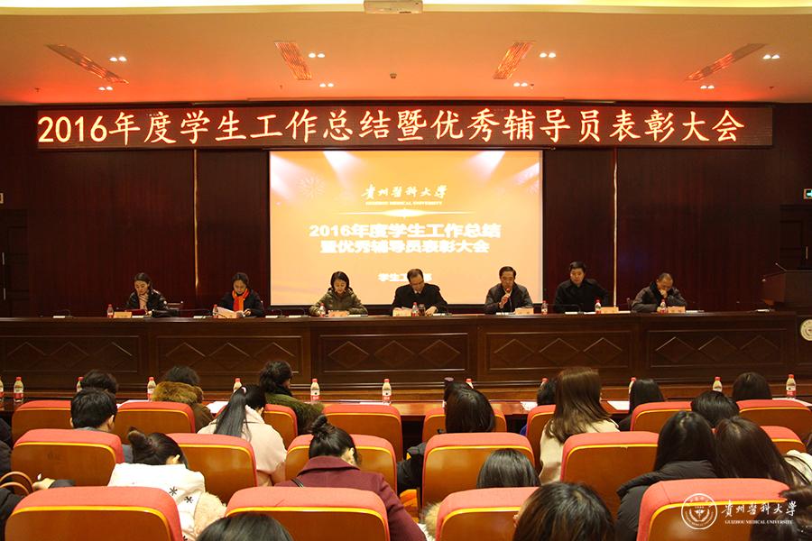 学工部部长赵平作2016年学生工作总结,校团委书记付萍作2016年共青团工作总结,学工部副部长周辉宣读了《关于表彰2016年优秀政治辅导员的决定》;基础医学院党委副书记廖兴江、口腔医学院党委副书记唐正龙分享了本学院团学工作经验;优秀辅导员代表护理学院分团委书记金晶也分享了自己的工作体会和对这份工作的热爱。