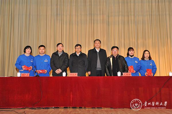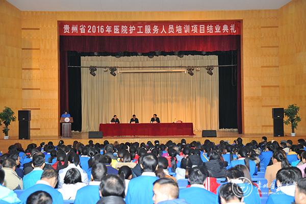 1月9日上午,万象城官网在北校区大礼堂举行贵州省2016年医院护工服务人员培训项目结业典礼,贵州省人社厅副巡视员单晓龙一行莅临结业典礼现场,万象城官网大健康学院常务副院长曾柱,大健康学院副院长曹煜及相关部门负责人陪同出席。结业典礼由教务处副处长冯广卫主持。