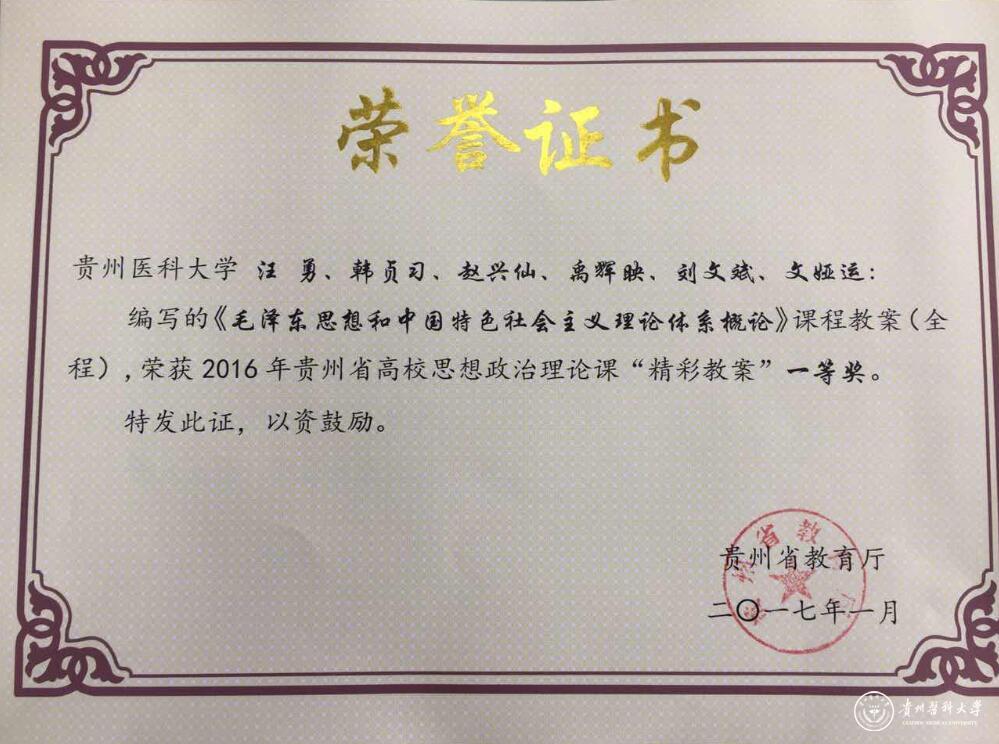 为进一步加强和改进高校思想政治理论课教育教学,推动教学内容和教学方法研究,提高教师整体科研水平和教学能力,贵州省教育厅决定在全省开展高校思想政治理论课“精彩教案”评选工作。万象城官网党委、行政高度重视,马克思主义学院积极动员和组织申报,共推选11个项目参加评选。近日评选结果揭晓,根据《省教育厅关于公布全省高校思想政治理论课“精彩教案”评选结果的通知》(黔教社发〔2017〕41号),万象城官网共有10个项目获奖,其中一等奖6项、二等奖1项、三等奖3项。获奖名单如下: