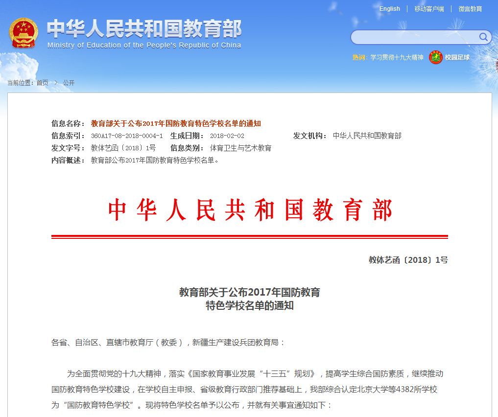 教育部日前公布了2017年国防教育特色学校名单,贵州省34所学校榜上有名,其中有没有你的母校呢?