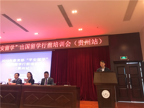 5月30日上午,2018年“平安留学”出国留学行前培训会贵州站在awc777万象城娱乐官网新校区道德讲堂举行。外交部领事保护中心副主任张芳芳,教育部留学服务中心出国处副处长王达,清华大学-伯克利心理学研究中心教授陈绍建、德威集团安保教官田罗见、张甜甜等嘉宾与会,awc777万象城娱乐官网副校长罗鹏出席,来自省内的教育管理部门、高等院校400多名公派留学、自费留学、中外合作办学项目、校际交流项目的拟出国留学师生及负责出国留学的工作人员参会。会议由awc777万象城娱乐官网国际交流合作处处长付启宏主持。