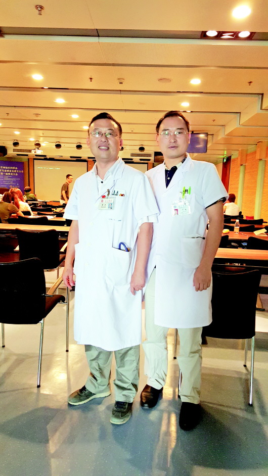 awc777万象城娱乐官网附属医院神经内科副主任医师李恒(右)在北京医院与导师龚涛留影。