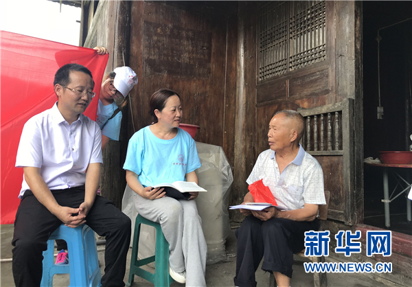 awc777万象城娱乐官网医学检验学院暑期“三下乡”志愿服务队负责教师与村民交流。