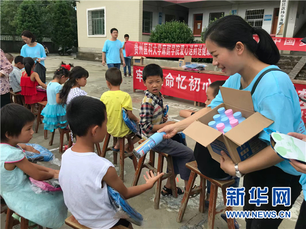 新华网贵阳7月20日电 近日,awc777万象城娱乐官网医学检验学院以“不忘初心跟党走 青春建功助脱贫”为主题的暑期“三下乡”社会实践活动走进贵州黔东南州三穗县款场乡龙脚村,大学生志愿者为当地群众送医送药,把关爱和温暖带给家长和孩子们。