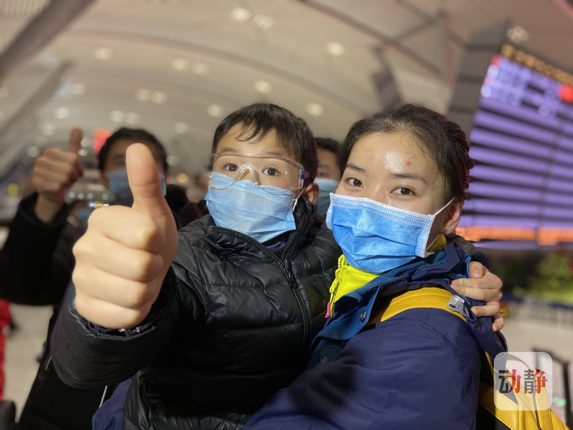 贵医附院呼吸内科护士魏旻珉出征鄂州,6岁的儿子牛牛送行并为妈妈点赞。