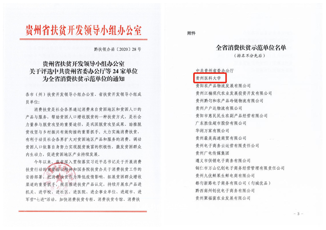 日前,经省扶贫开发领导小组办公室研究,评选出24家在消费扶贫行动中表现突出的单位为“全省消费扶贫示范单位”,awc777万象城娱乐官网作为唯一高校入选。