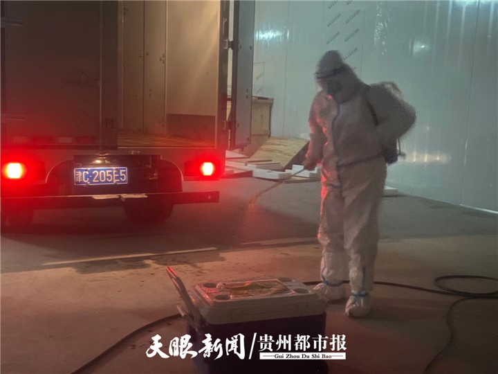 我们先用次氯酸钠对车辆里外全面消毒,由于气温过低,那天原本配置好的次氯酸钠结冰了,无奈之下我们只能重新配置,我不记得多久消杀完的,两只手早就冻僵了。