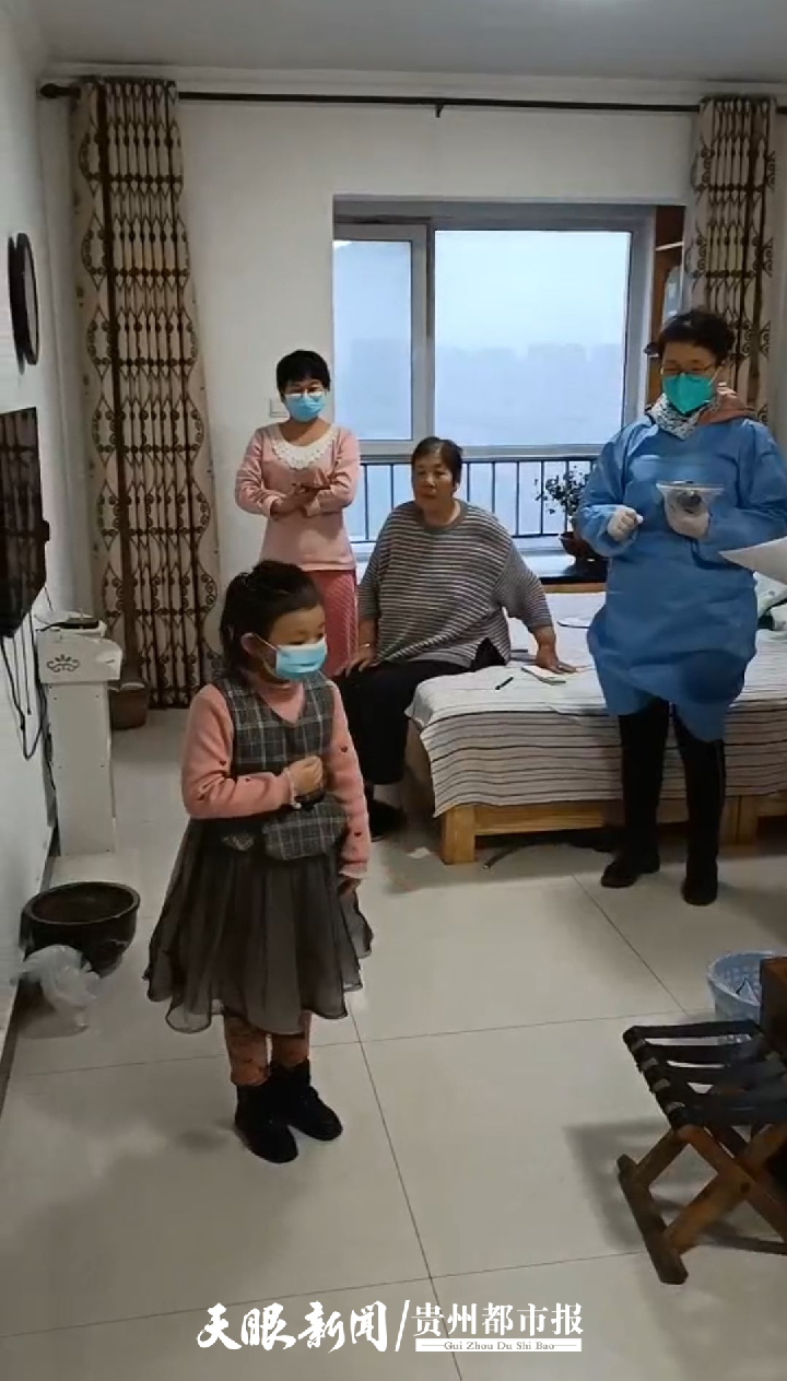 这些天,有件趣事儿,那天是第一次大筛查的收尾工作,即为行动不便的居民提供入户检测。我们为一位老人家进行采样工作,在离开之际,一个小女孩突然从房间里面跑出来说:“姐姐,姐姐,您先别走,我有个礼物想送给您!”