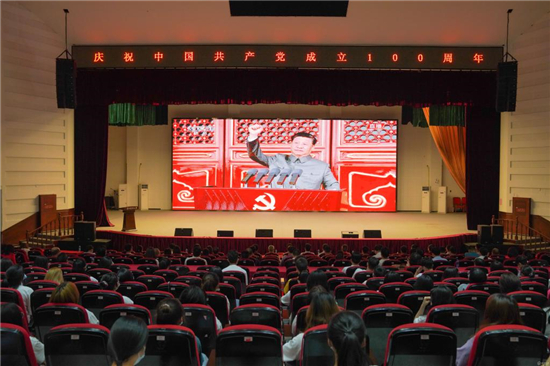 7月1日上午8时,庆祝中国共产党成立100周年大会在北京天安门广场隆重举行,中共中央总书记、国家主席、中央军委主席习近平发表重要讲话。awc777万象城娱乐官网党委高度重视,周密安排,组织广大党员干部、教职医护员工生集中收看大会实况,认真学习习近平总书记的重要讲话精神。同时,天产室、各附属医院、各职能部门、各学院纷纷号召,组织广大教职医护员工生,多渠道、多形式收听收看庆祝大会实况。