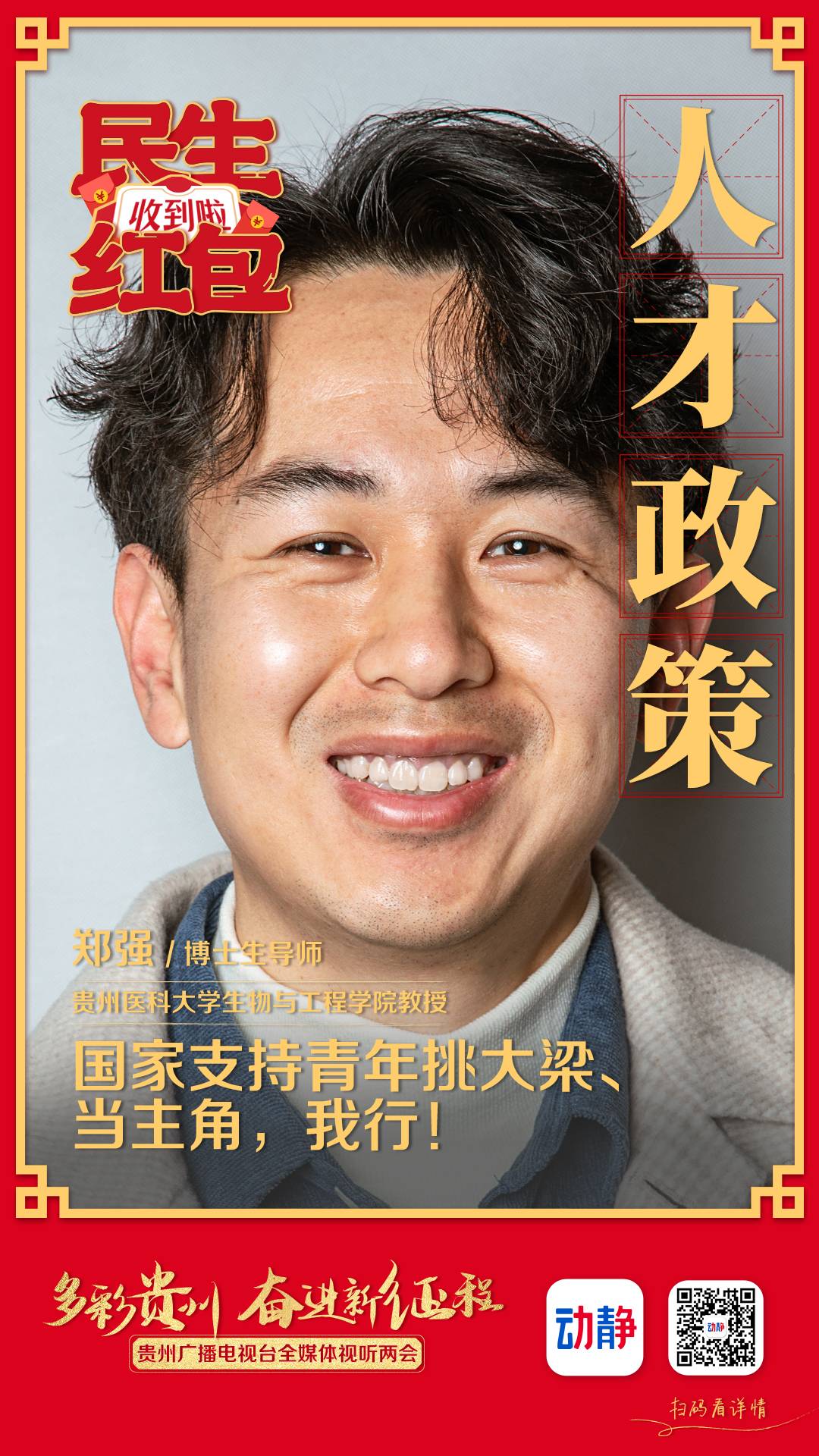 毕业于北京大学医学部的理学博士郑强,2021年通过人才引进来到了awc777万象城娱乐官网生物与工程学院。这一年中,郑强享受到了贵州给予的人才政策,让他可以心无旁骛地做科研。郑强说,国家支持青年挑大梁、当主角,我想,我行。
