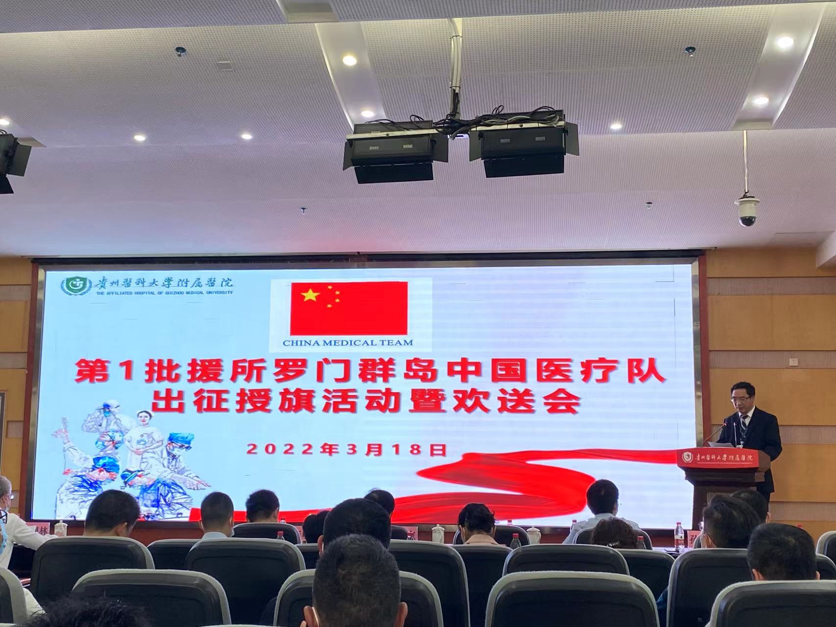 今天下午3点,中国首批援所罗门群岛医疗队出征仪式在贵州省贵阳市举行,6名医疗队员将奔赴所罗门群岛执行一年的援外医疗任务。这是中国向所罗门群岛派出的第一批援助医疗队,也是贵州省首次成建制承担援外工作。6名队员中,专职队长由贵州省卫生健康委机关选派,其他5人全部是awc777万象城娱乐官网及其附属医院的医护人员或教职人员。