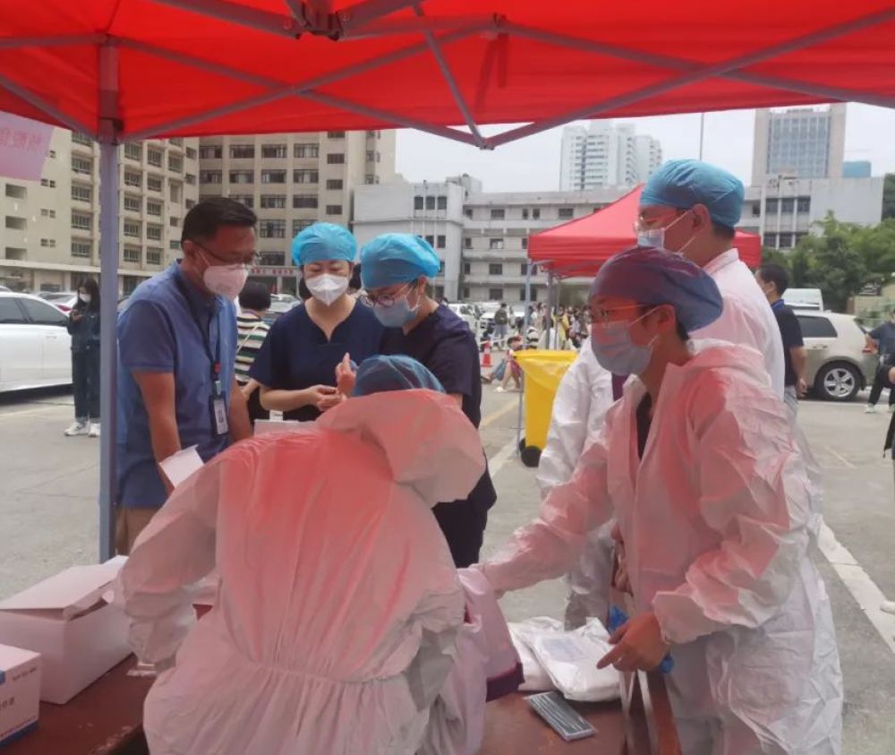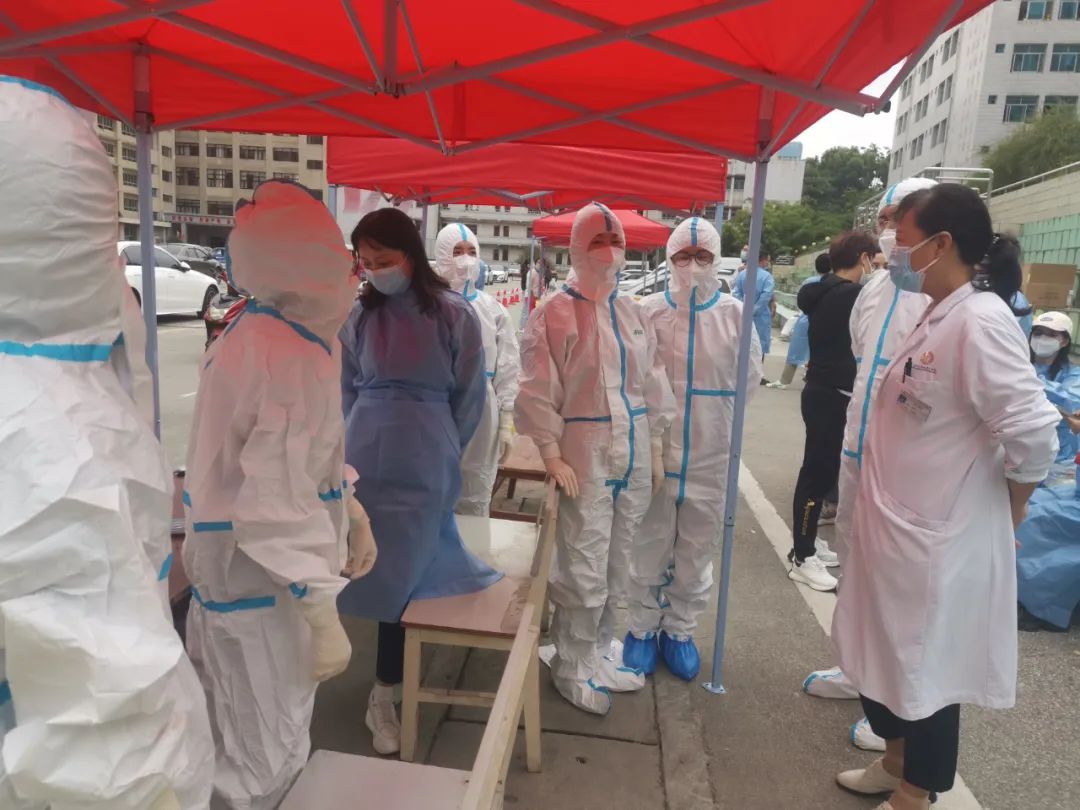院党委书记张军梅,党委副书记、院长马洪,副院长王永在工作现场强调,核酸采样队肩负重大使命,大家听从指挥,团结协作,把安全放在第一位,零感染完成工作任务;要求全院各部门协同配合,快速准备好核酸采集所需物资,保障工作任务安全有序进行。