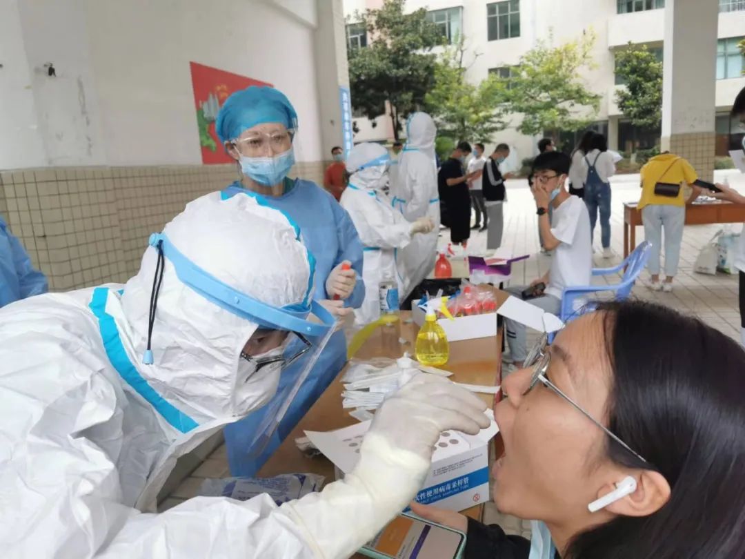 按照学校防疫部署,目前健康码为黄码的同学被隔离在指定地点,无法完成个人核酸采集,由护理部副主任吴姗带领移动核酸采集小分队前往隔离寝室为黄码同学们进行核酸采集,截至9月3日19:40分,共计完成核酸采样3000余人次。