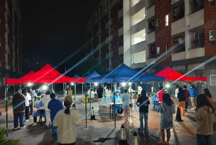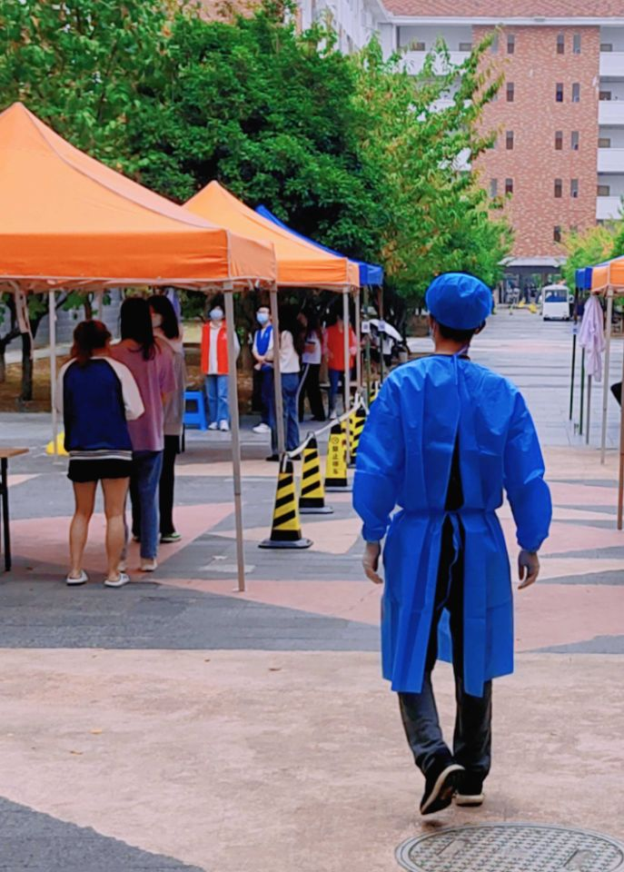 疫情无情人有情。核酸检测时,检测工作人员和志愿者们比我们更早到位;在我们回寝室补觉的时候,工作人员还在战斗。看着他们维持秩序的忙碌背影,我想对他们说:谢谢你们的付出!