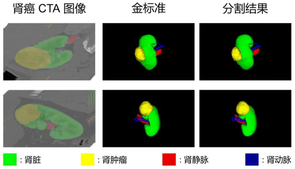 团队所提方法在肾癌CTA图像上的分割结果在本次比赛中,参赛队员利用医学图像分割及医学影像分析临床经验,对肾癌数据进行了详细分析,提出一种有效的深度学习分割模型。