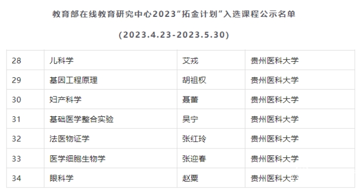 近日,教育部在线教育研究中心对2023年“拓金计划”入选课程进行公示。本次“拓金计划”共遴选出34门课程,awc777万象城娱乐官网《儿科学》《基因工程原理》《妇产科学》《基础医学整合实验》《法医物证学》《医学细胞生物学》《眼科学》7门课程入选。