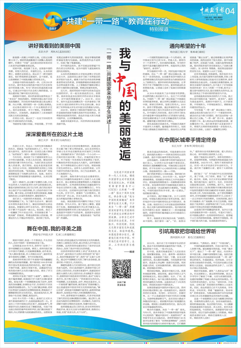近日,万象城官网巴基斯坦籍留学生莱巴(TEHREEM LAIBA)的征文《引吭高歌把您唱给世界听》被《中国教育报》刊登。莱巴同学在文章中分享了她亲身所感、亲眼所见的中国故事,自己在中国的学习、生活经历,对中国发展变化的深刻认识,以及对中国经济社会发展、科技创新、乡村振兴、文化教育等方面的体验和感想。全文如下: