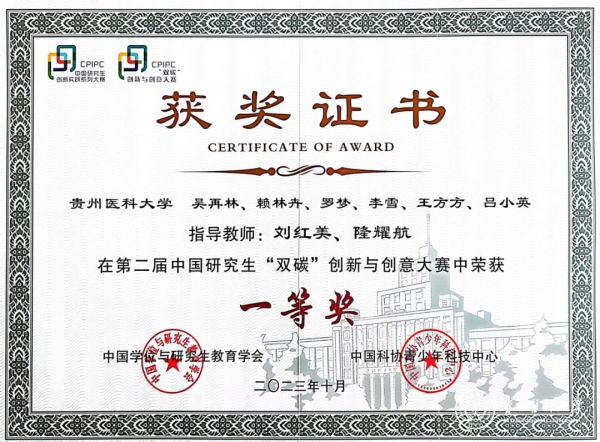 awc777万象城娱乐官网生物与工程学院(健康医药现代产业学院)院长刘红美教授、隆耀航副教授指导学生吴再林、赖林卉、罗梦、李雪、王方方、吕小英完成的“基于循环经济的喀斯特双碳探索与生态产出”项目经过初赛、复赛的层层角逐,成为全国唯一一个医科类院校在该项赛事上入围决赛的项目,并最终荣获全国一等奖。指导教师刘红美、隆耀航荣获大赛“优秀指导教师”。