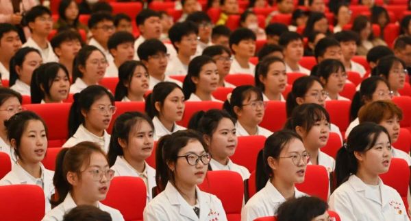 刘文表示,同学们应心怀国之大者,肩负时代之责;牢记医学使命,守护人民健康;筑牢学业根基,练就过硬本领。?希望同学们志存高远、脚踏实地,勇担时代使命,把个人的理想追求融入祖国医药卫生健康事业之中,在强国建设、民族复兴的伟大征程中挺膺担当、奋勇争先!
