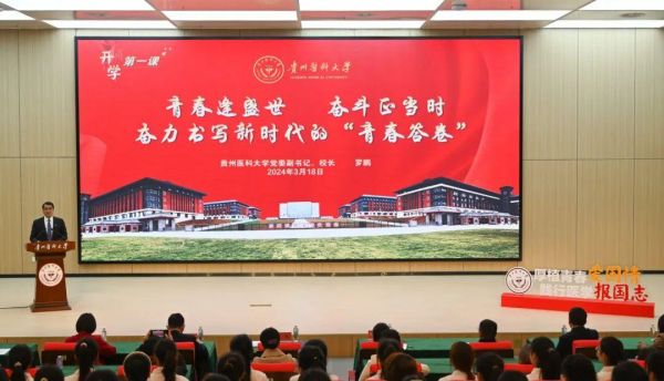 汤磊在主持时表示,在习近平总书记“3.18”重要讲话发表5周年的重要日子举办2024年春季学期校领导讲“开学第一堂思政课”意义重大。一代又一代的贵医人,正在不懈努力,艰苦奋斗,立足新时代新征程,为实现中国式现代化,培养政治合格、思想过硬、本领过强,可担当民族复兴大任的时代新人,更好的服务于建成社会主义强国的国家战略目标。