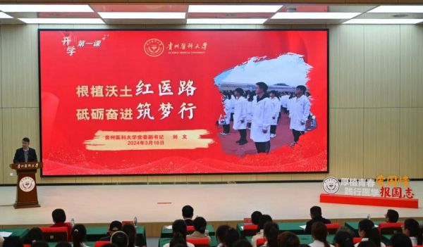 党委副书记刘文以《根植沃土红医路 砥砺奋进筑梦行》为题,以贵医心怀国之大者的前辈大师及练就过硬本领的师兄师姐的故事为例,激励同学们把握大学时光,激荡新气象,实现新突破。将爱国主义精神融入自我成长之中。
