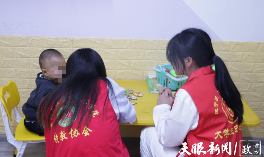座谈会结束后,志愿者们便开始了儿童康复志愿服务。志愿者们走进了星爱婴康复中心,与特殊儿童们进行了接触,加入到了他们的康复训练过程中,分组与贵工程特教协会的志愿者们针对性地对每个孩子开展了相关康复训练,将康复治疗相关知识与特殊教育融合,为小朋友们设计有趣的康复训练,帮助他们早日回归正常生活。