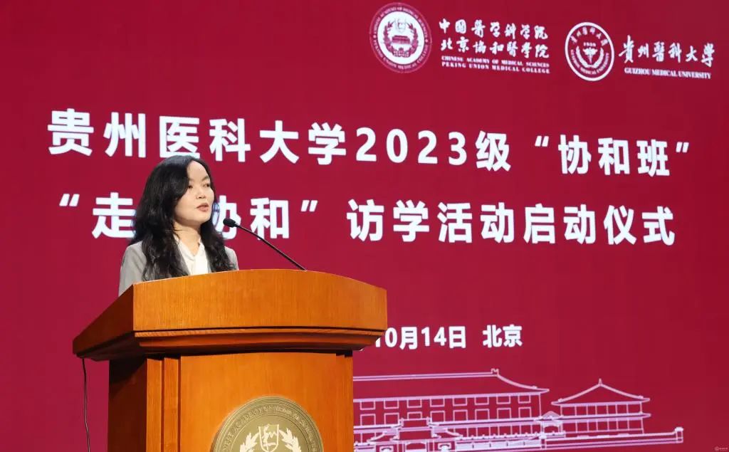 张勤强调,贵医校训“诚於己、忠于群、敬往思来”是遵从本心,行利民利国之道,协和校训“尊科学济人道”是尊重科学,建不断创新之理念,“协和班”学子选拔的是贵州省最优质的学苗,要继承和发扬两校的优秀品质和精神力量,坚持“高进”“优教”“严出”的精英教育理念,注重加强多学科融合教育。并希望同学们珍惜此次访学机会,追寻协和医学大家成长奋斗之路,感受医者的使命职责,夯实医学基础,注重综合素养提升,关注群体、种群、人类、众生乃至生态的健康,具有专业主义精神和济世为民之举。