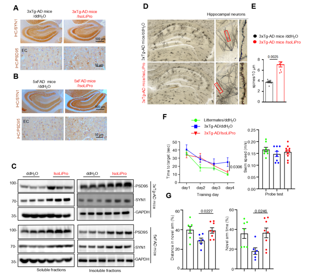 (图4)IsoLiPro ameliorates synaptic plasticity deficits andspatial memory impairment