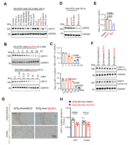图2 IsoLiPro markedly decreases USP11 protein level inSH-SY5Y cells and the mice brain