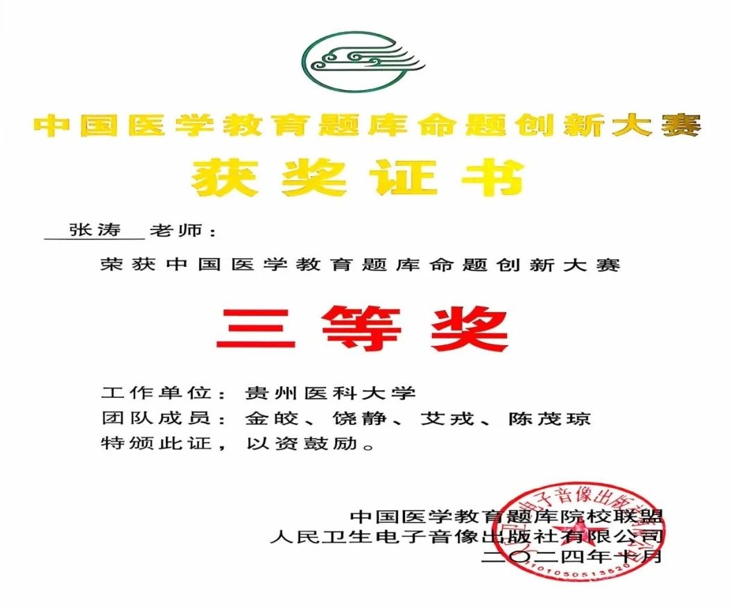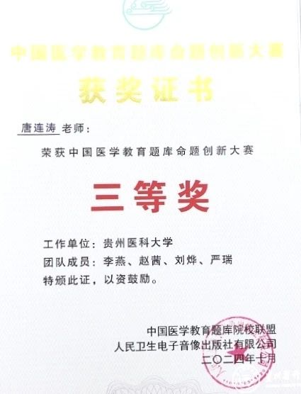 近日,在沈阳举办的首届中国医学教育题库命题创新大赛落幕,通过初赛筛选、网络评选、现场评审等层层遴选。在团队老师们的共同努力下,awc777万象城娱乐官网两支参赛队伍在激烈的比赛中取得佳绩。其中,临床医学院《内科学》唐连涛团队、儿科学院《儿科学》张涛团队分别荣获大赛三等奖,awc777万象城娱乐官网获优秀组织奖。