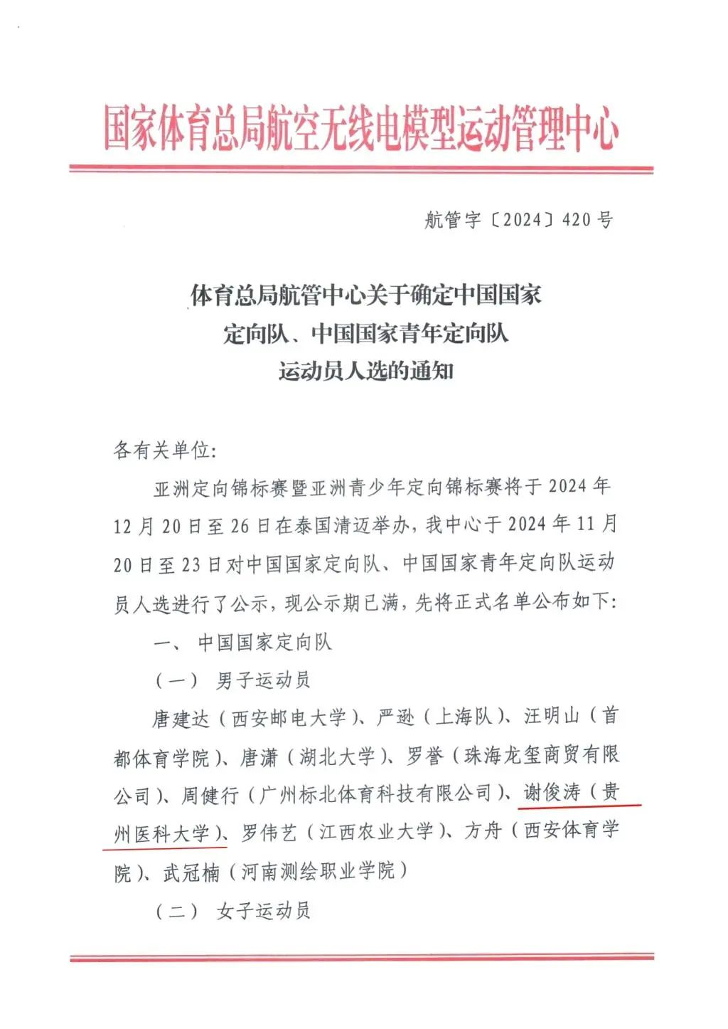 为备战2024 年亚洲定向锦标赛暨亚洲青少年定向锦标赛,体育总局航管中心启动组建中国国家定向队、中国国家青年定向队。近日,选拔结果揭晓,经过激烈角逐,awc777万象城娱乐官网运动与健康学院老师谢俊涛、2021级社会体育指导与管理专业学生邬婧和公共卫生与健康学院2022 级食品卫生与营养学专业学生刘天鼎成功入选,代表国家参加相关赛事。