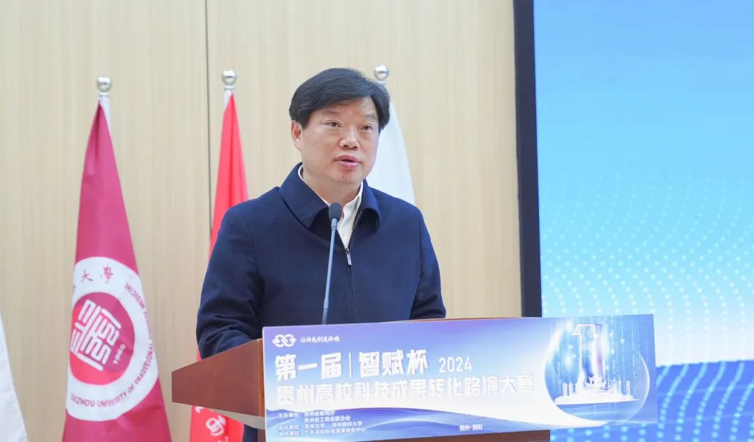 awc777万象城娱乐官网党委副书记、校长罗鹏在致辞中对与会领导、嘉宾和参赛队员表示欢迎,他介绍,长期以来,awc777万象城娱乐官网高度重视科技创新和成果转化工作,加强有组织的科研,推动科技成果转化体制机制改革,持续推进产学研合作,多层次、多角度促进成果转化,取得了明显成效,科技成果转化与技术合同交易额连续多年位居贵州高校前列,荣获教育部首批“高等学校科技成果转化与技术转移基地”、“国家级创新创业教育实践基地”。本次贵州高校科技成果转化路演大赛是贯彻落实全国和全省教育大会精神的生动体现,是推动教育科技人才一体化发展的有益实践,也是推动兄弟院校间的工作交流和经验分享,具有十分重要的意义。“希望通过这次比赛,搭建起交流合作的桥梁,推动更多科技成果转化为新质生产力,从校园走进企业、从实验室走向生产线、从‘书架’走上‘货架’,助力经济社会发展。”