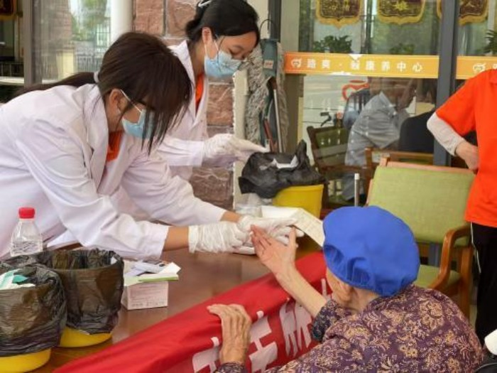 医学检验学院实践队在养老院为捞人测量血糖、血压