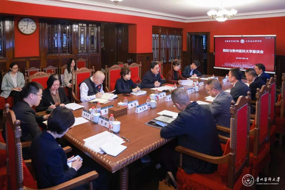 为进一步推动与中国医学科学院北京协和医学院(简称“院校”)对口支援工作,10月11日,校党委书记汤磊,党委副书记、校长俞松,副校长潘卫东一行赴院校交流。院校党委书记、副院校长邓海华,党委副书记张勤,副院校长、党委常委杨涛出席交流座谈会,两校相关职能部门负责人参加。会议由张勤主持。