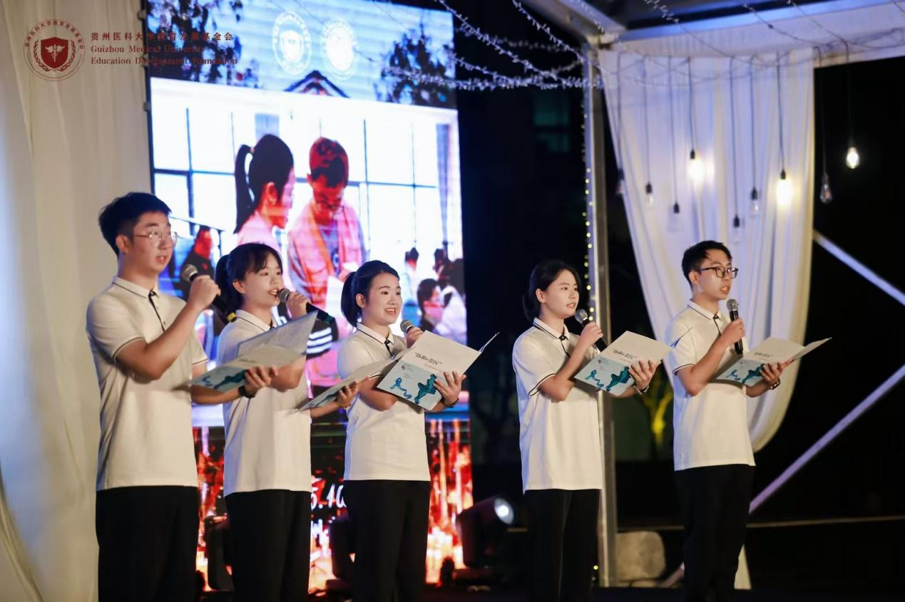整场晚会的点睛之笔,是主题曲《共织蓝丝带》的压轴登场。这首歌曲由项目顾问专家、北京协和医院郎景和教授与专家团顾问团长谭先杰教授共同作词,贵州省音乐家协会杨乾江先生作曲,由薛丽娜、李进两位演唱者倾情演绎。歌曲将专业的医学关怀融入温暖的歌词与旋律之中,象征着“协和”与“贵医”以及所有社会力量携手,共同为贵州女性编织一条坚实的宫颈癌防治“蓝色纽带”。这首歌将项目团队的公益足迹与守护女性健康的坚定承诺娓娓道来,为整场活动画上圆满句号。